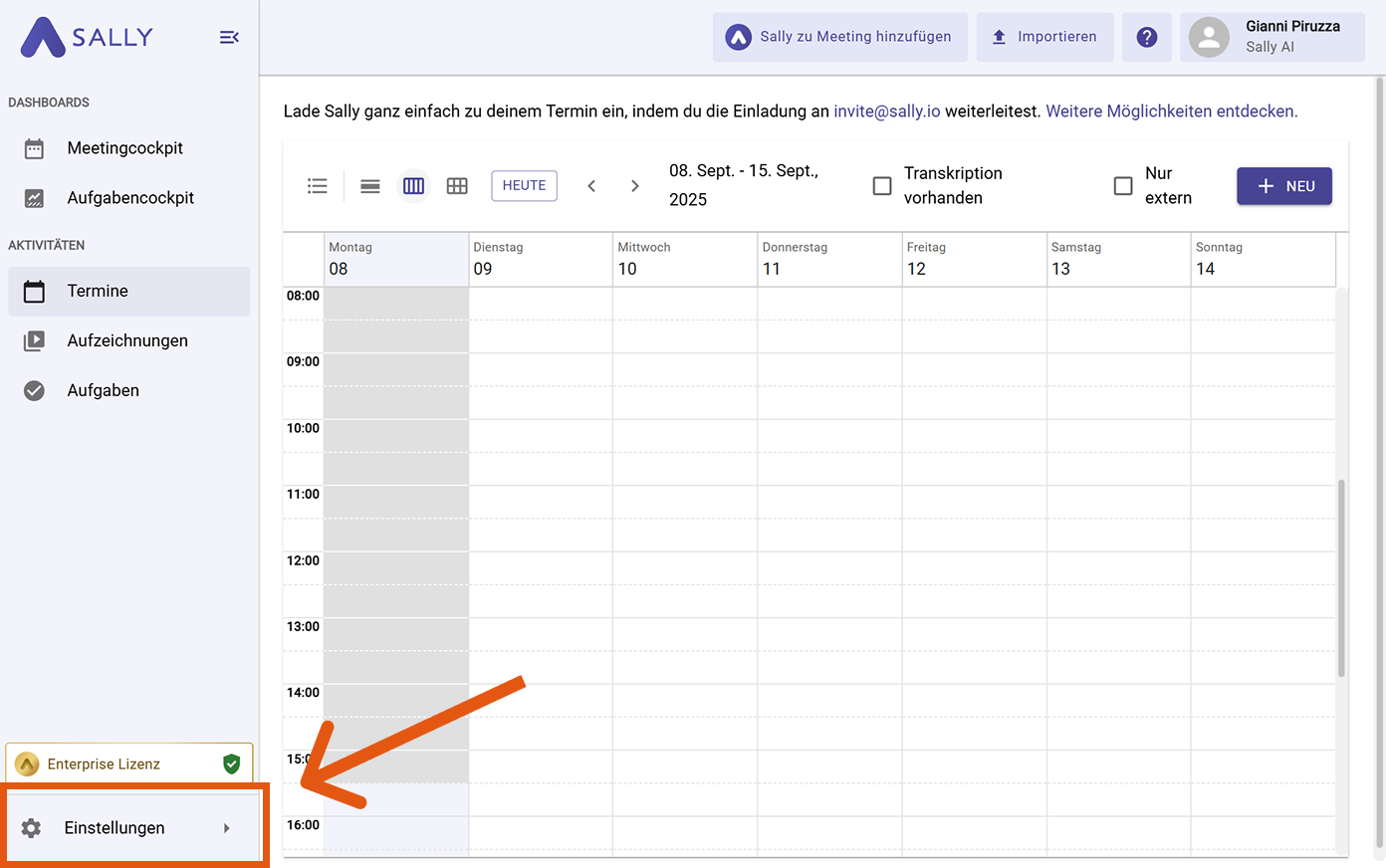 Als Besitzer oder Admin legst du zentral fest, welche Integrationen Nutzer in deinem Unternehmenskonto in Sally verwenden dürfen. So behältst du den Überblick und kannst die Richtlinien deines Unternehmens zu Drittanbieter-Tools, Data Governance und Compliance durchsetzen.