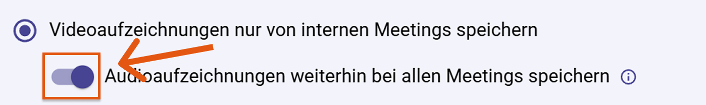 infoWenn keine Audioaufzeichnungen gespeichert werden sollen, deaktiviere den Schalter „Audioaufzeichnungen weiterhin bei allen Meetings speichern".