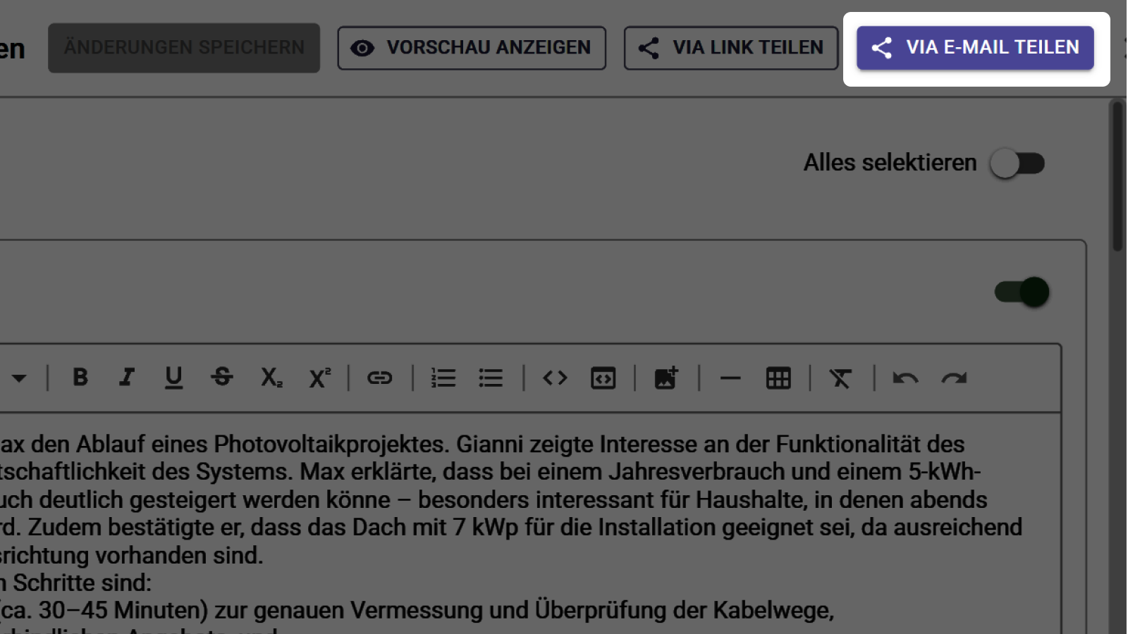- Via E-Mail teilen: Sende die Zusammenfassung direkt an eine oder mehrere E-Mail-Adressen.