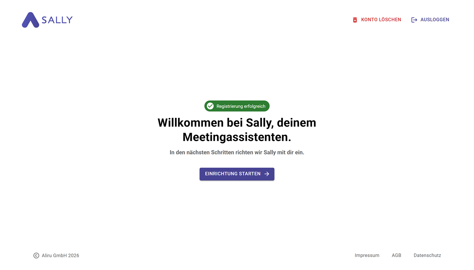 - Dein Sally-Konto wurde nun erfolgreich erstellt. Du wirst auf die Sally-Startseite weitergeleitet.