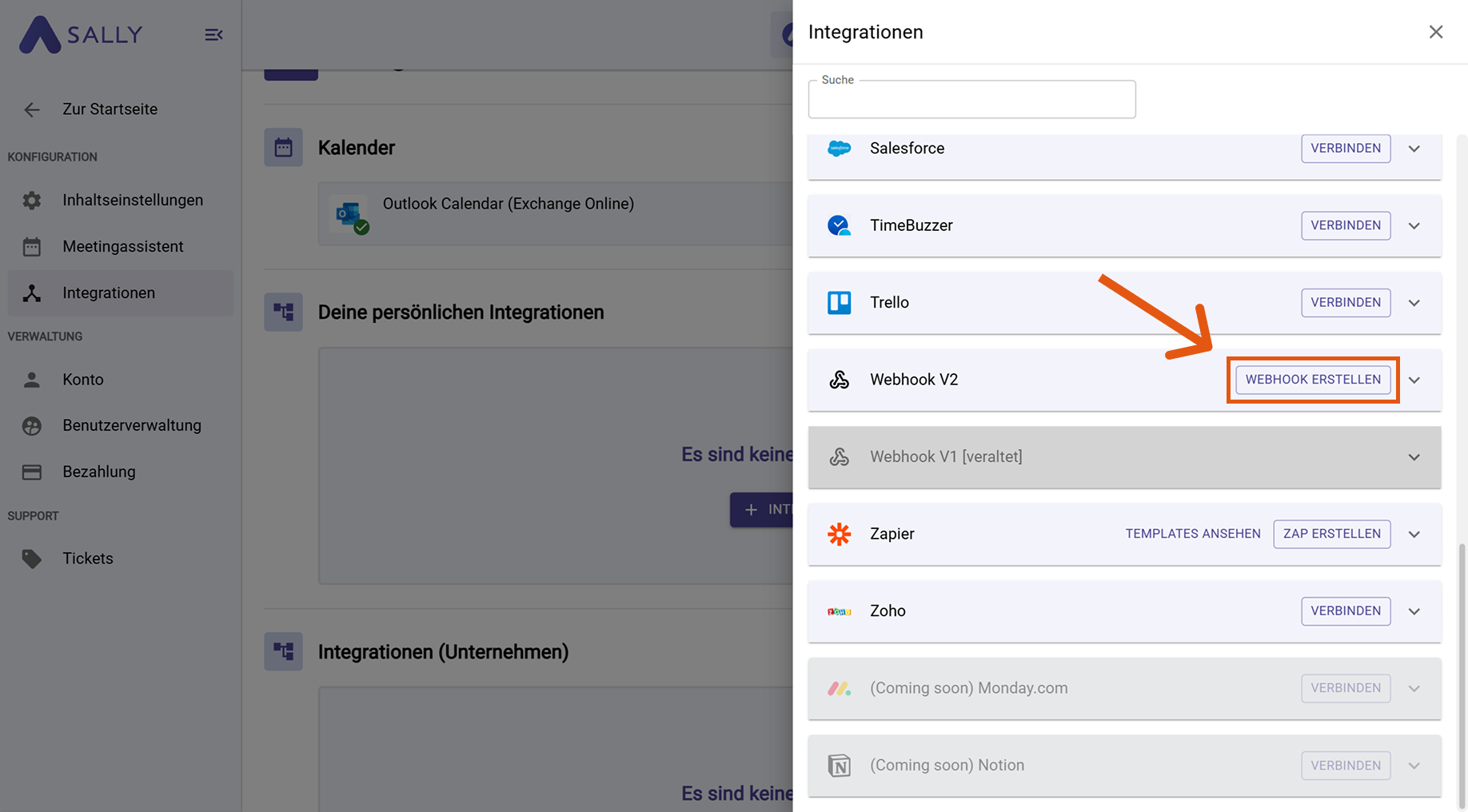 Damit du Sally mit einem anderen Tool per Webhook verbinden kannst, benötigst du Folgendes: