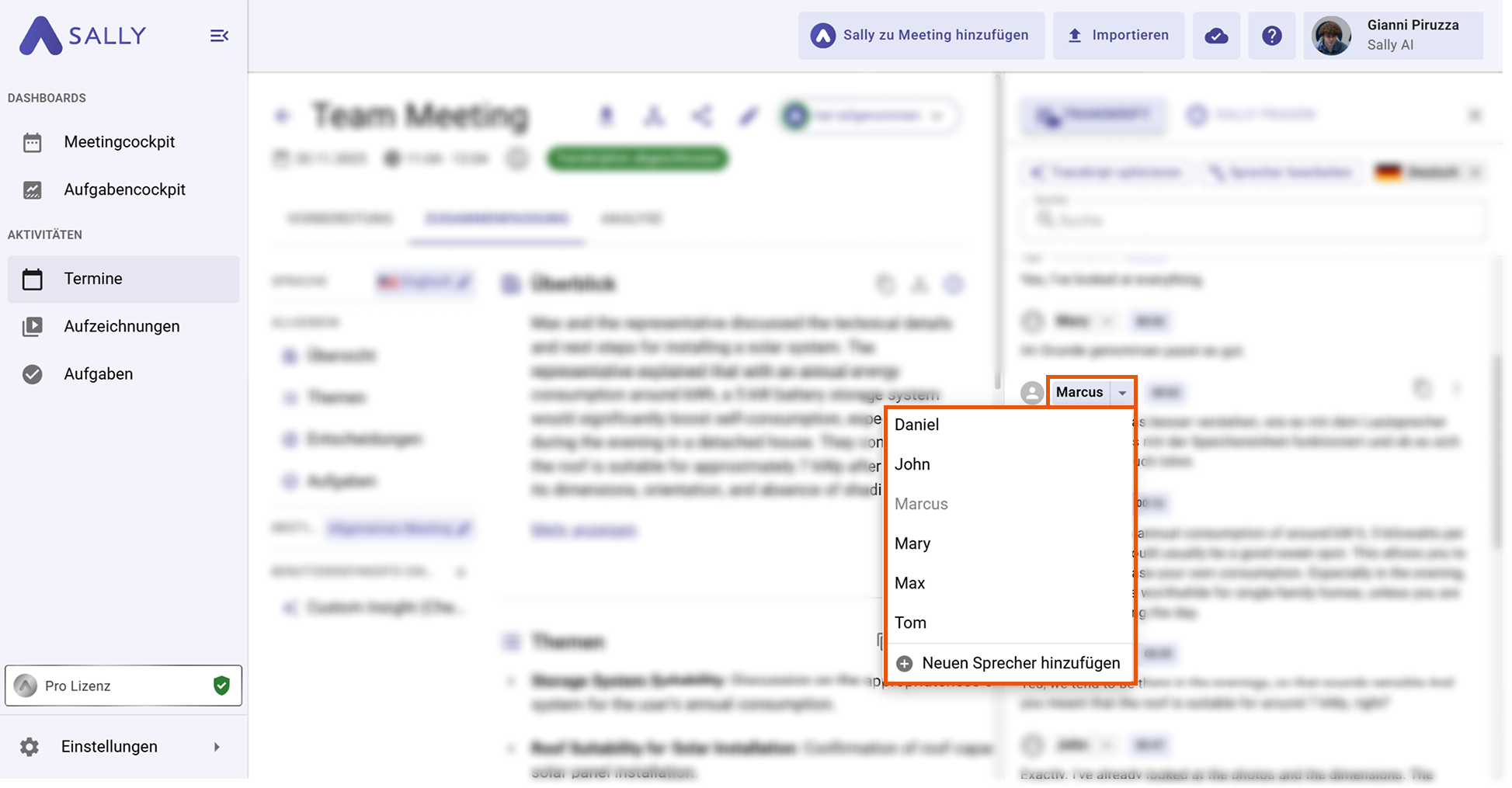 Falls ein Textblock dem falschen Sprecher zugeordnet wurde – etwa durch Überschneidungen im Gespräch – kannst du den Sprecher manuell korrigieren.