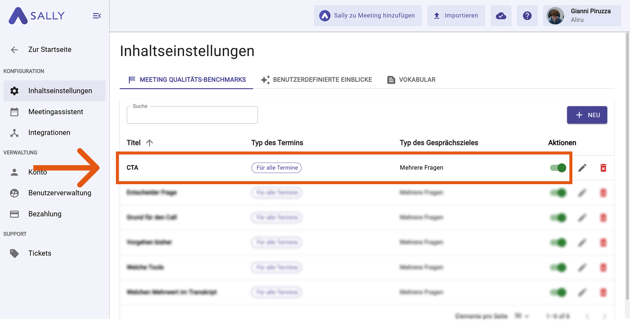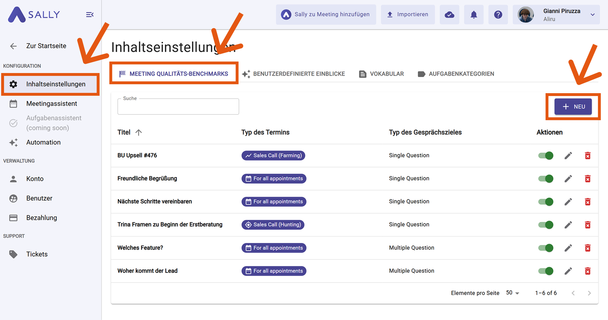 Mit Meeting-Qualitäts-Benchmarks kannst du festlegen, welche Gesprächselemente in einem Meeting vorkommen müssen (z. B. nächste Schritte bestätigen, Preis-Einwand behandeln, nach Zufriedenheit fragen).