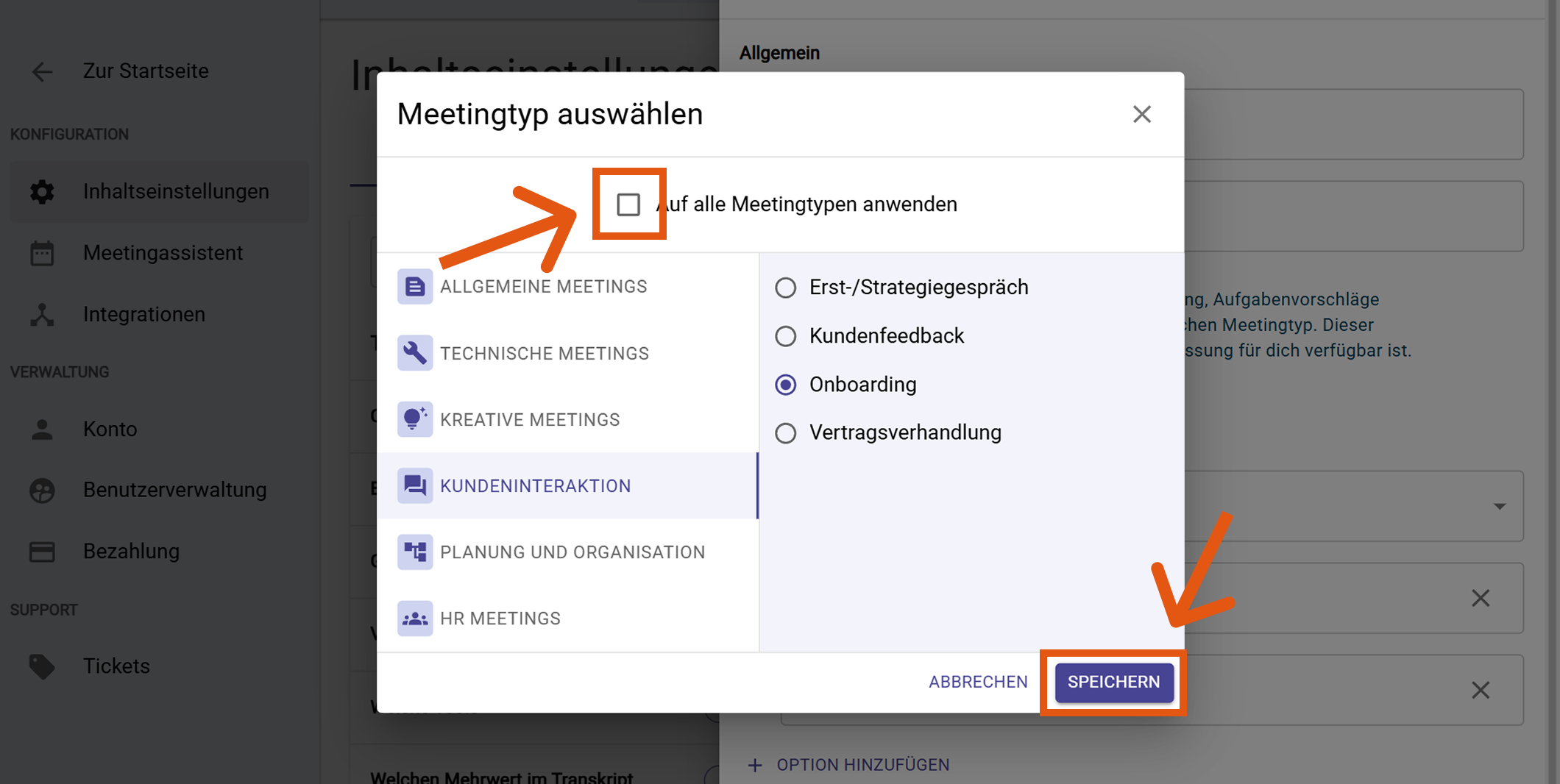 Gilt für alle Termine oder nur für einen bestimmten Meetingtyp (z. B. HR-Meeting, Onboarding oder Qualifikationsgespräch).