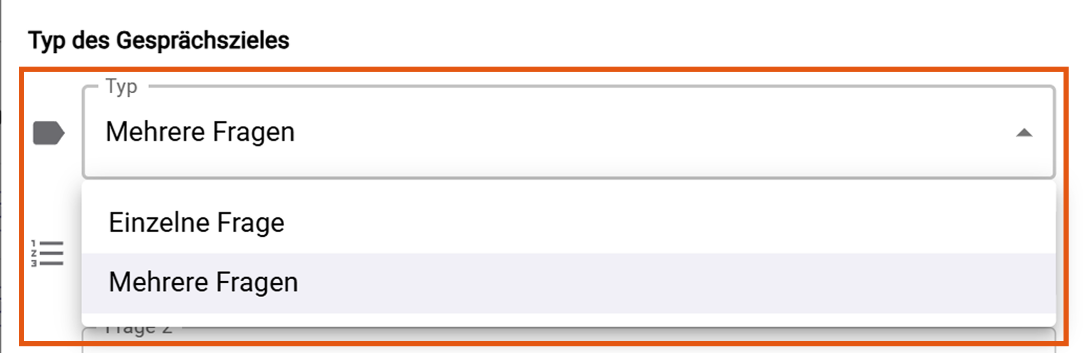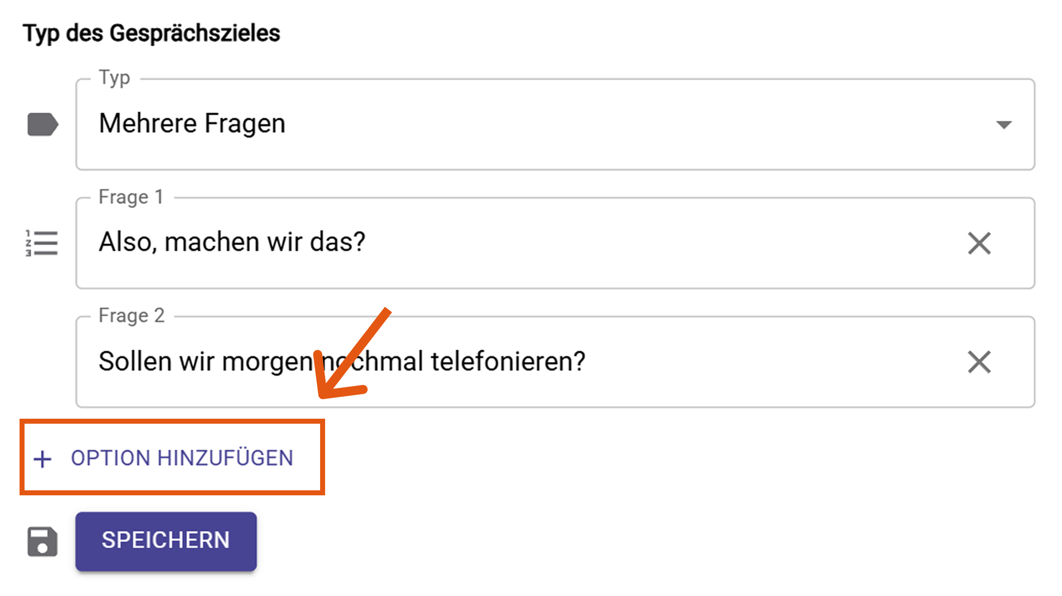 Wähle den "Typ des Gesprächszieles“ aus: