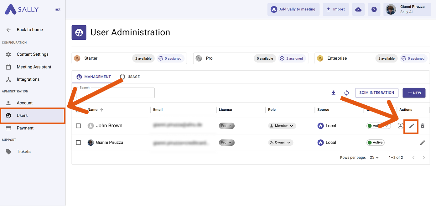 Navigate to Settings → Users