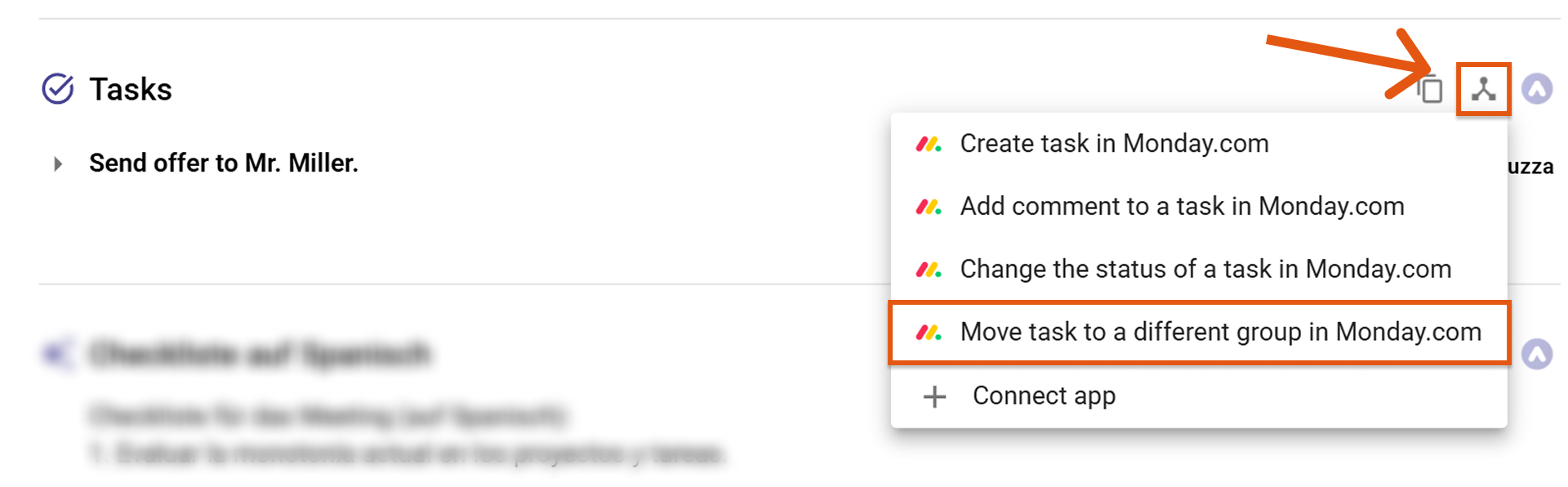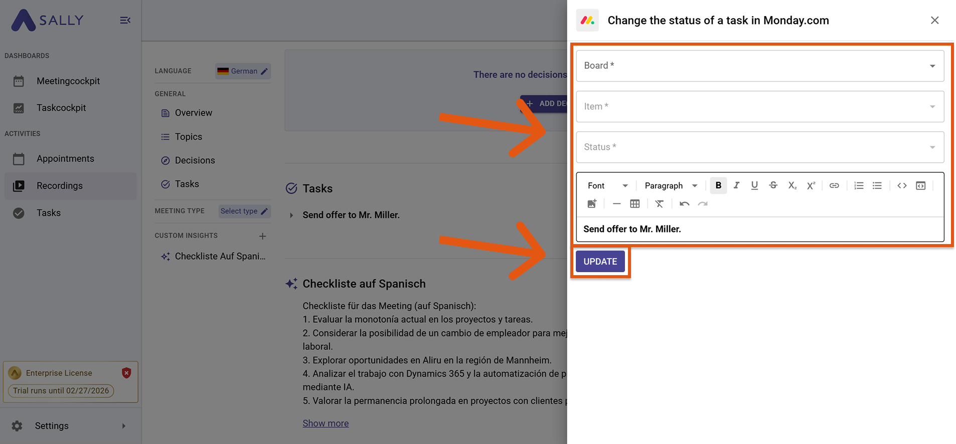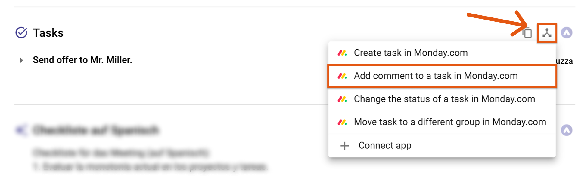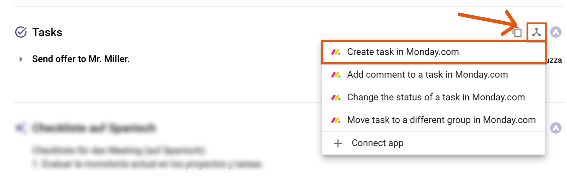 Once Monday.com is connected, you can send meeting content directly from Sally to Monday – no copy & paste required.