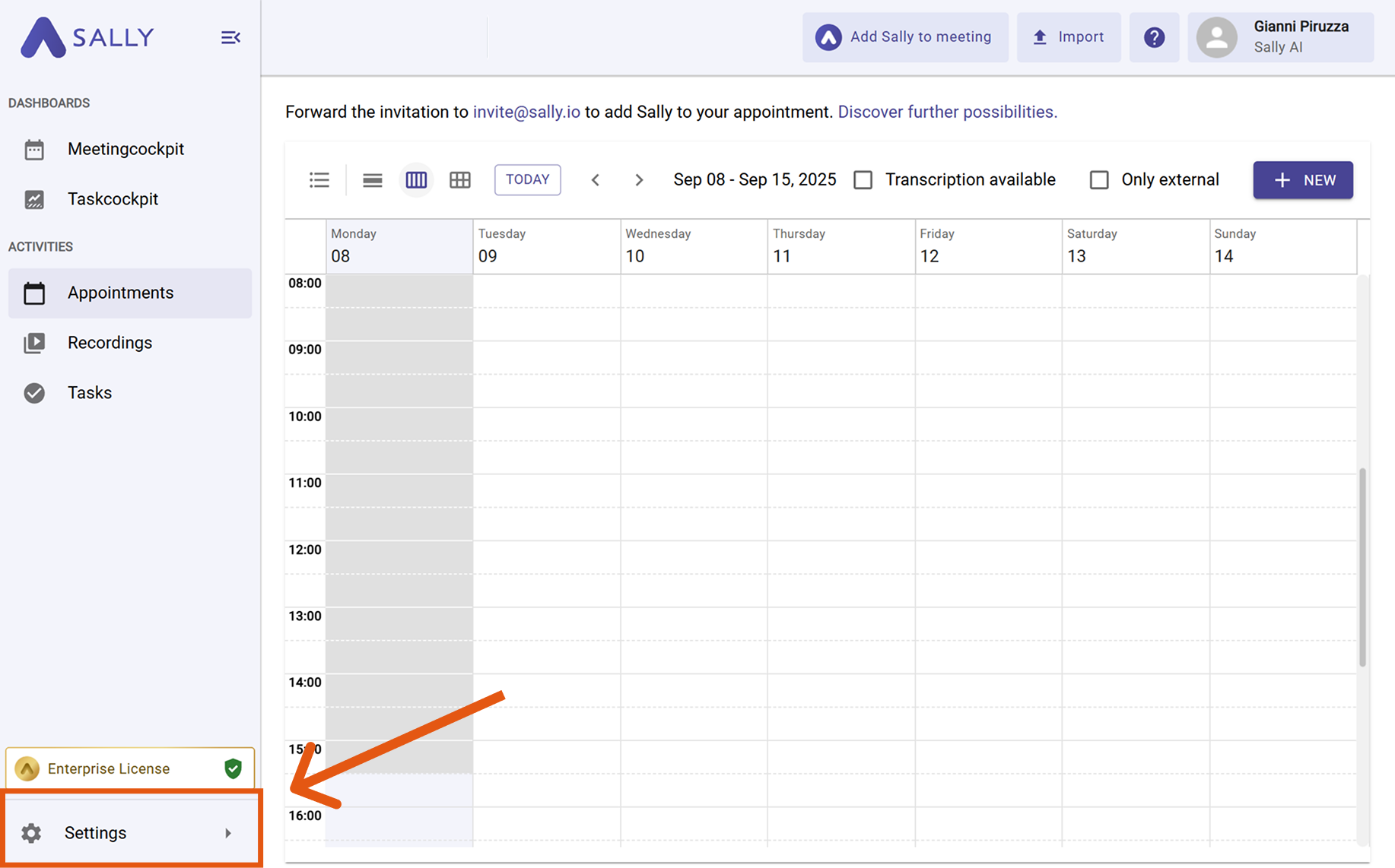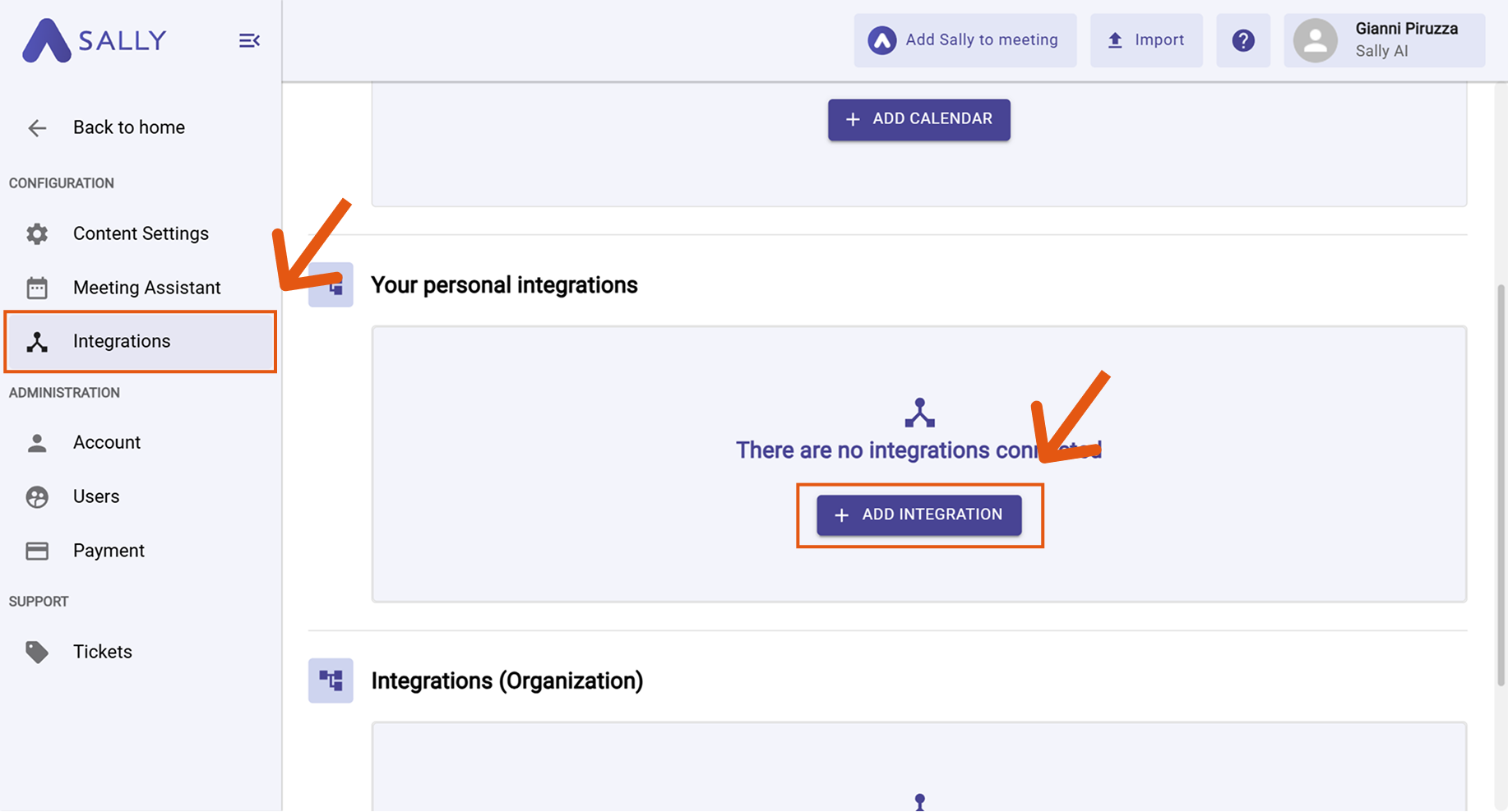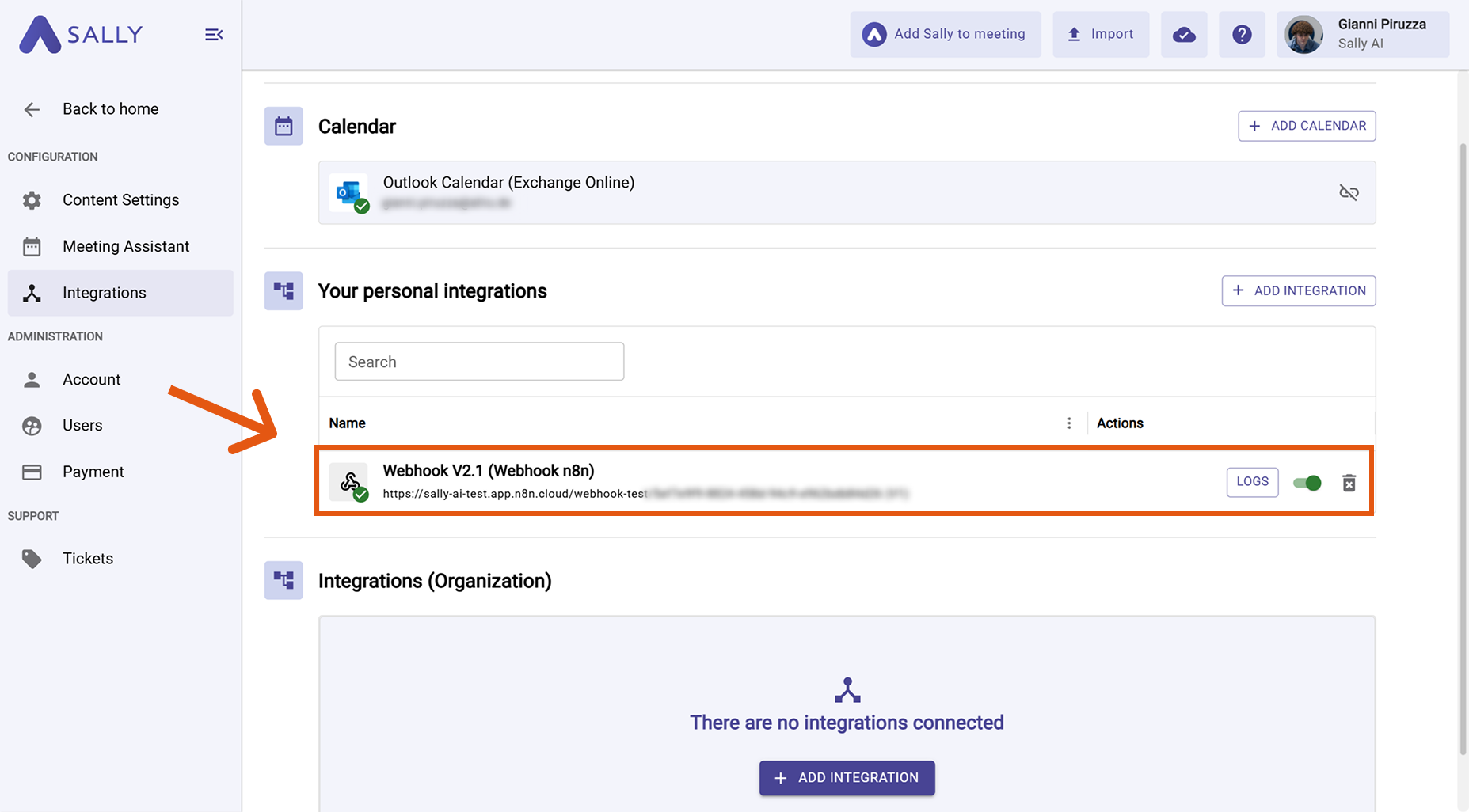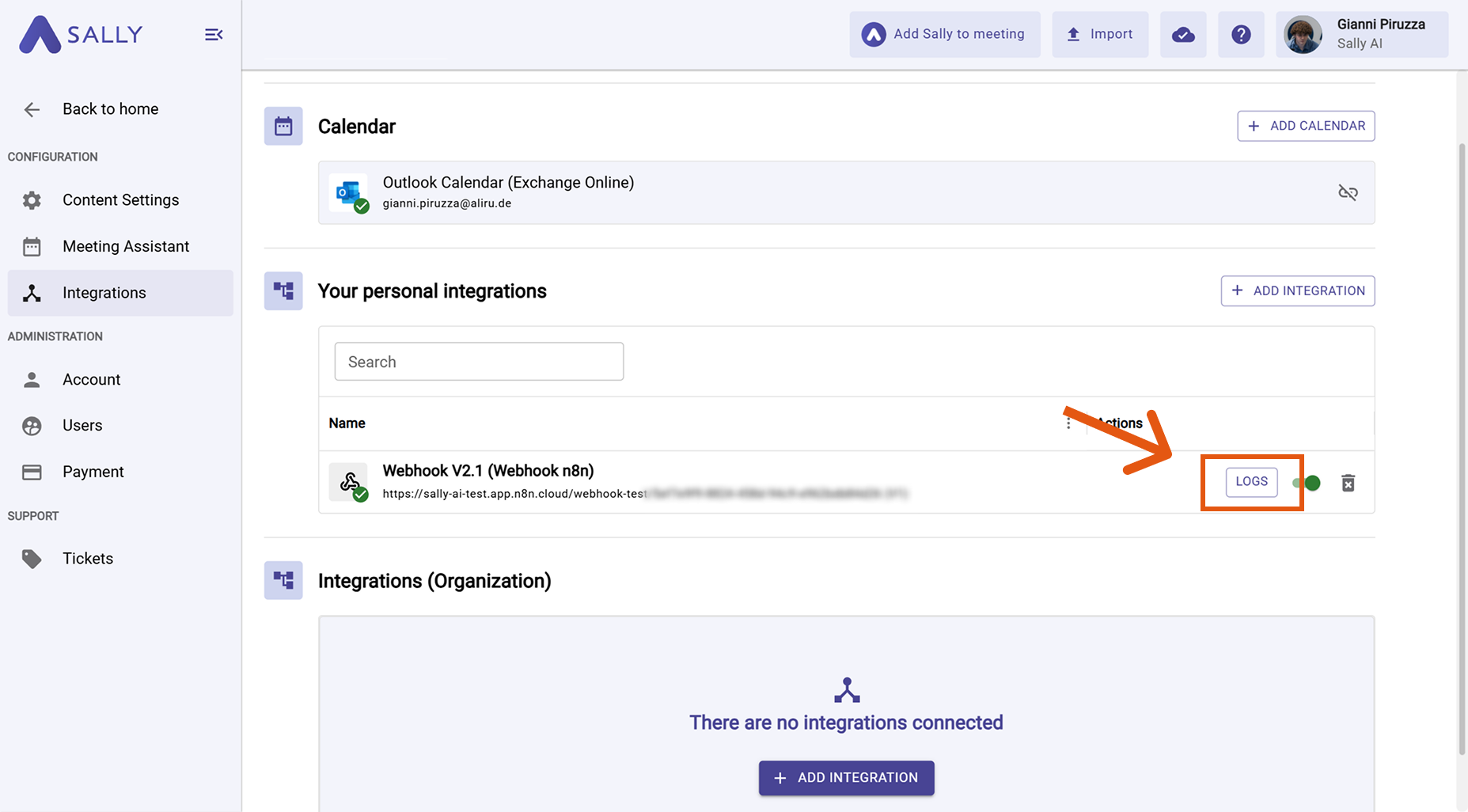 A Sally account with integration permissions