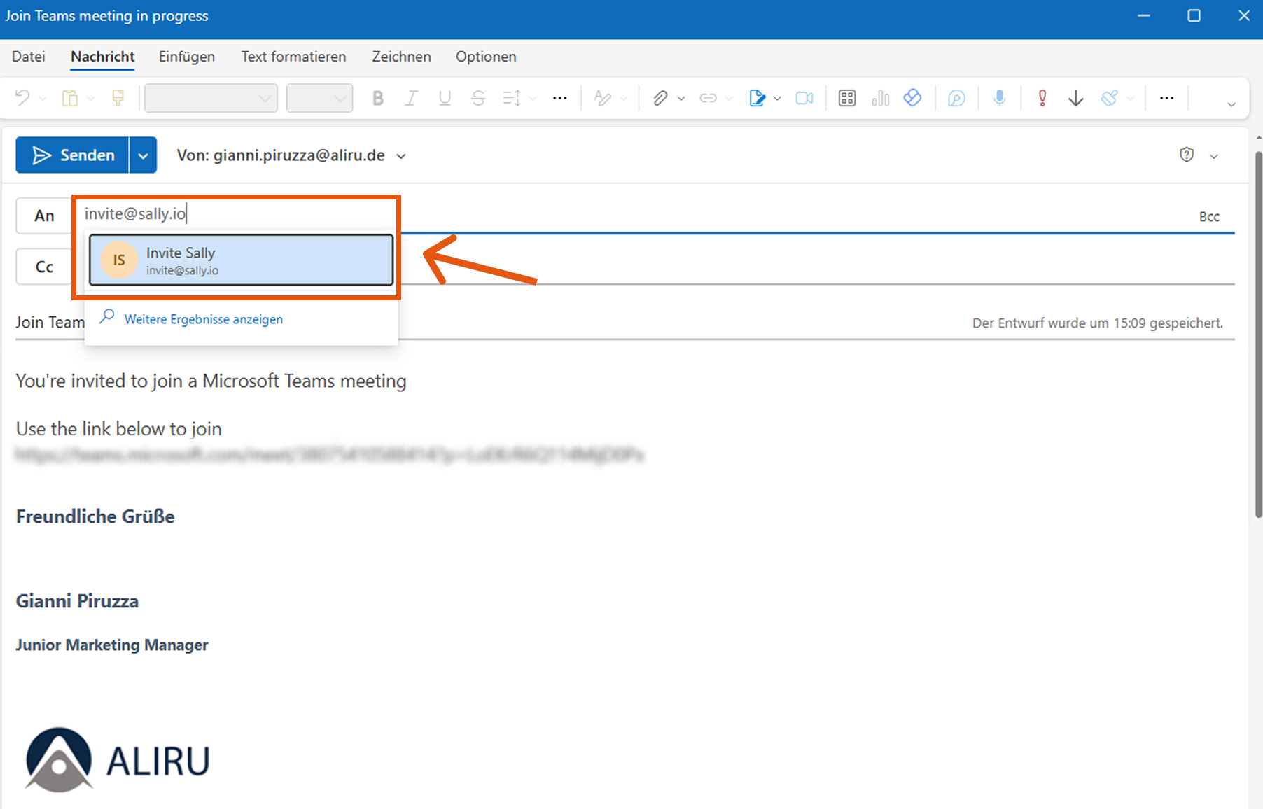 Figure 1: Invite Sally manually to the meeting via email