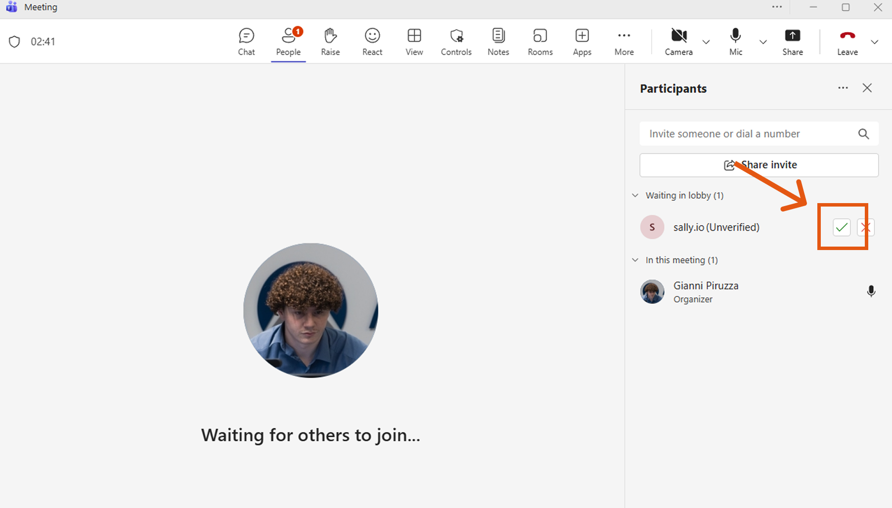 - Send the email. Sally will join the online meeting lobby within a minute. Now you just need to let her in.