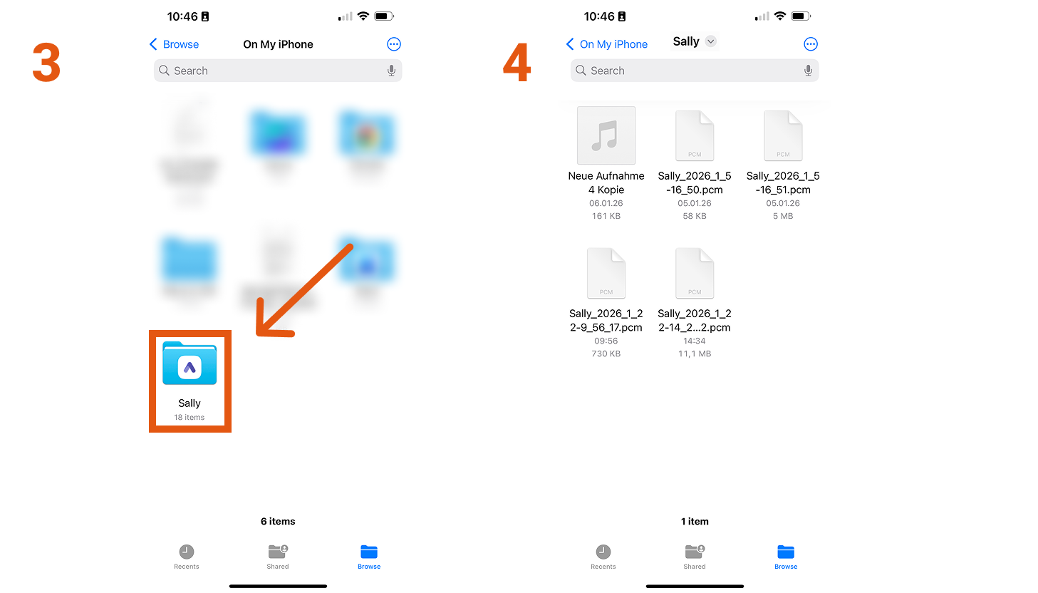 Sally stores ongoing and aborted recordings locally on your smartphone. You can access them at any time and manually upload them to Sally.