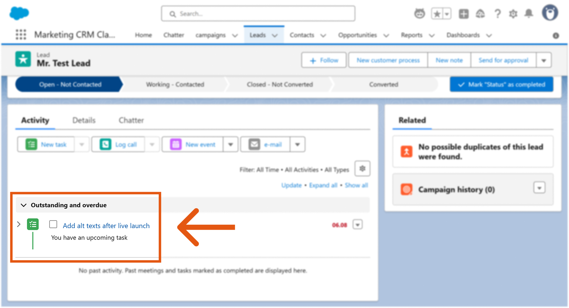 - You will now find the task in the assigned instance (in this example, in Salesforce).