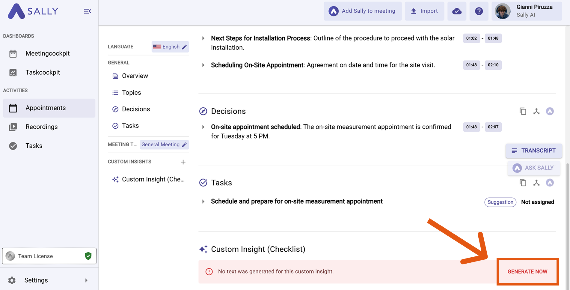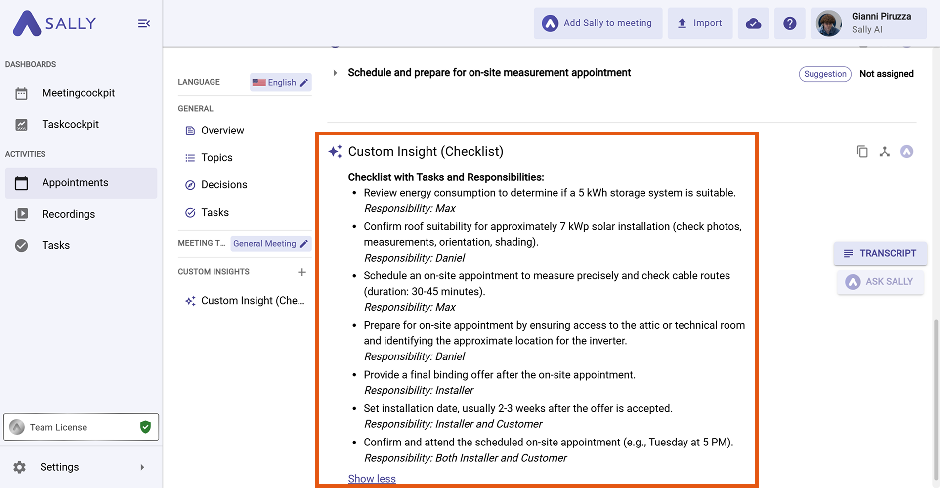 Sally helps you clearly highlight key information - such as topics, tasks, and decisions - in your standardized meeting summaries.