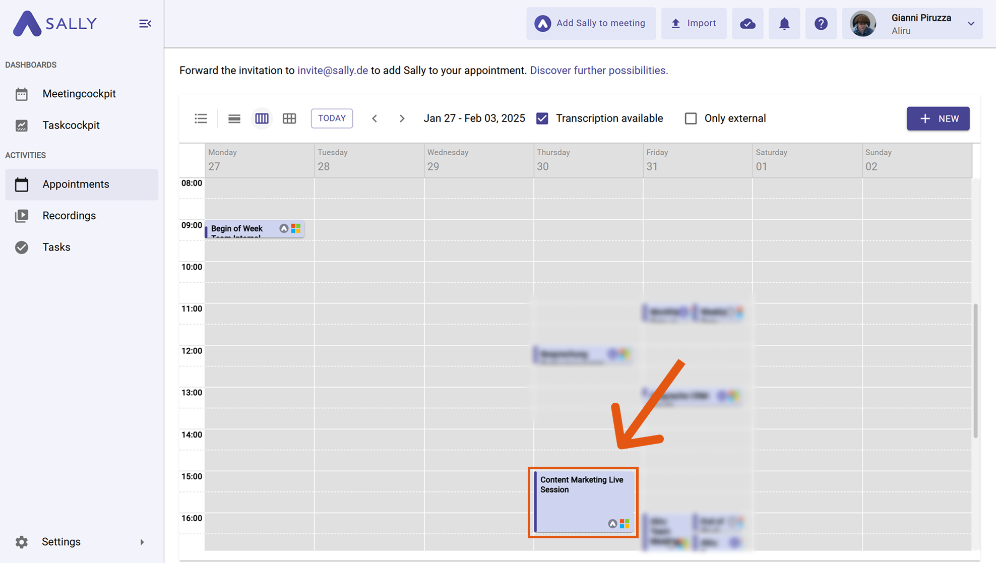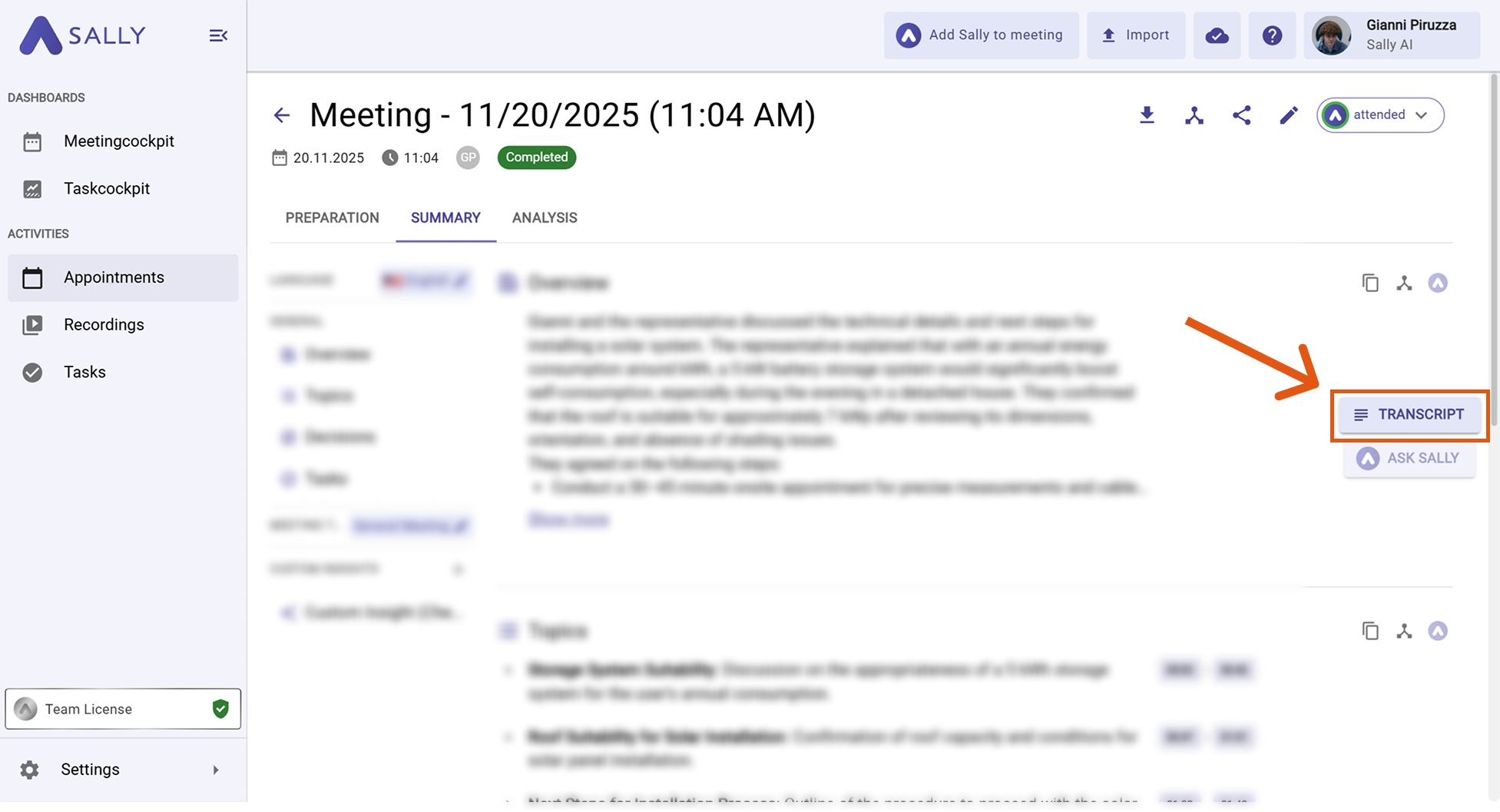 If you want to edit the transcript of an imported file, you can do this in the Recordings tab. This allows you to edit directly from your list of saved recordings without opening an appointment.