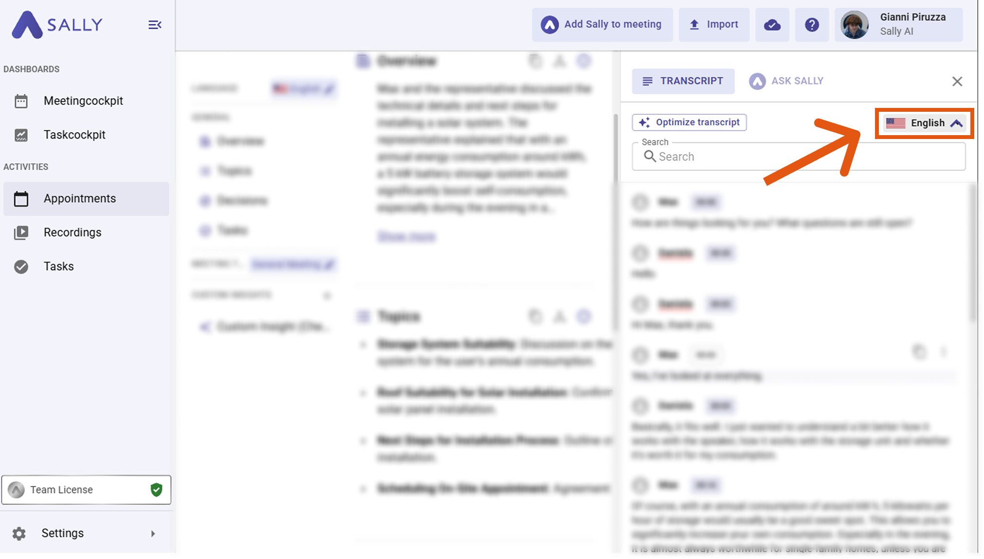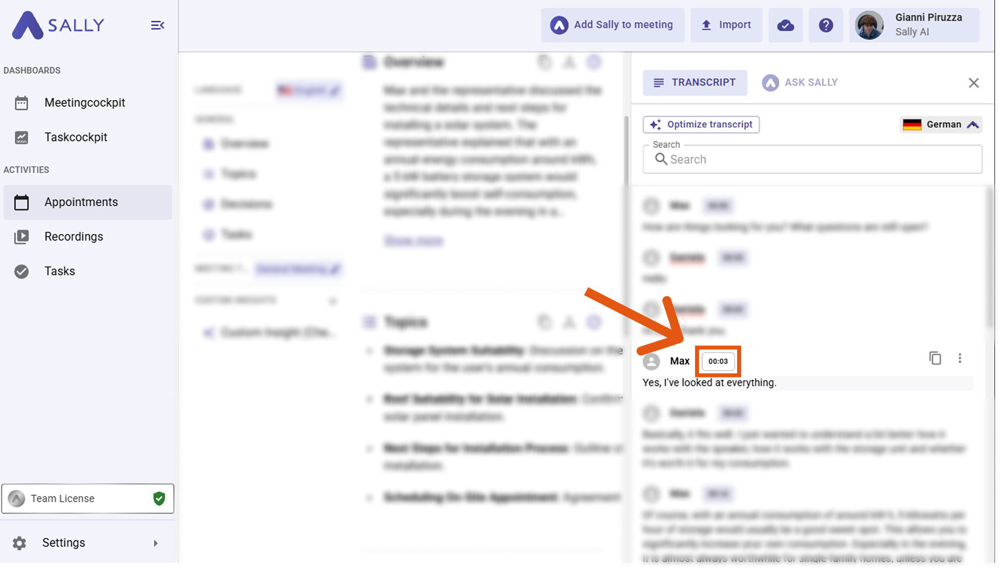 - Open the relevant meeting in Sally.