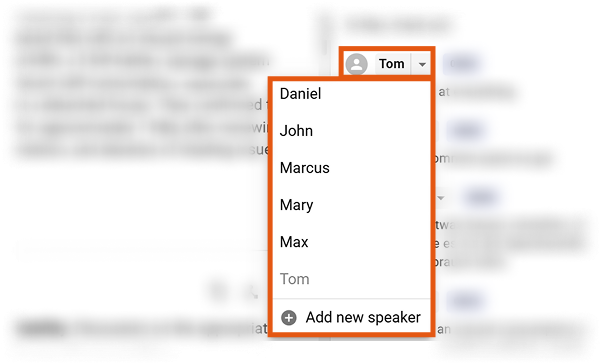 Instead of manually editing names in the text, you can simply select the correct speaker from a dropdown list.